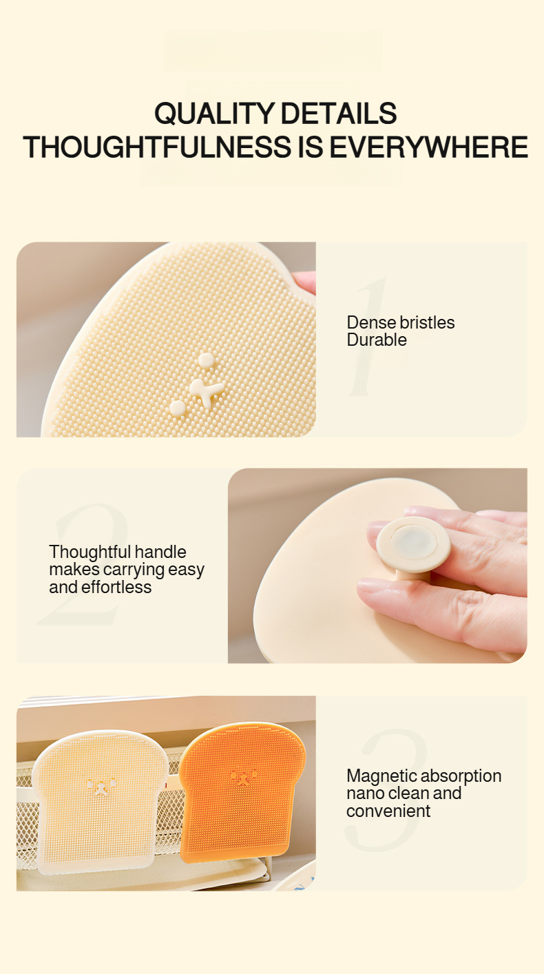 ● Made from high-quality, food-grade silicone, this brush ensures safe and effective cleaning of fruits, vegetables, and dishes without scratching surfaces. ● Flexible and durable bristles easily remove dirt, pesticides, and residues from produce, making your food safer and healthier to eat. ● Ergonomic, non-slip design offers a comfortable grip for effortless cleaning, even with wet or soapy hands. ● Easy to clean and quick-drying, the silicone brush is dishwasher safe and resists bacteria build-up for long-lasting use. ● Multipurpose functionality allows you to use one tool for scrubbing fruits, vegetables, pots, pans, and delicate dishware, saving space in your kitchen.